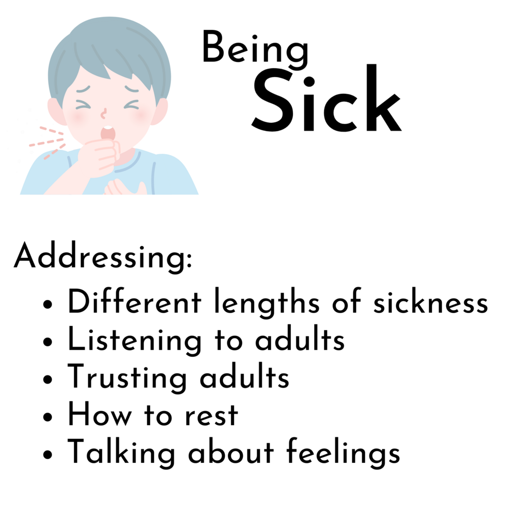 Being sick can be scary for kids. It feels yucky, and it's something not all kids comprehend. In When You Are Sick - Alternative Social Story, children will learn what it means to be sick, find out other living things get sick and who fixes them as well as be introduced to new faces such as doctors and nurses and medication - every adult will be there and able to help. This story covers different parts of the body that get sick and talks about the timeline of how long it might take to get better, sometimes a day, seven days or longer. It opens up conversations with their adults to ask how long it may take. It ends with affirmations for the child as they are recovering.